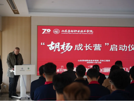 仪式环节严格按照议程有序推进。汽车工程系党总支副书记刘一鸣宣读《“胡杨成长营”实施方案》,明确成长营以“铸牢中华民族共同体意识”为核心主线,聚焦少数民族学生成长成才需求,构建“1+4+X”赋能体系。其中,“1”条核心主线锚定民族团结根本方向,“启航·融入”、“铸魂·引领”、“励学·攻坚”、“赋能·未来”4大基础模块提供全周期成长支持,X项个性化拓展菜单涵盖文化体验、体育健康、志愿公益、技能竞赛等多元内容,旨在将胡杨“坚韧、担当、奉献、乐观”的精神内核融入人才培养全过程。