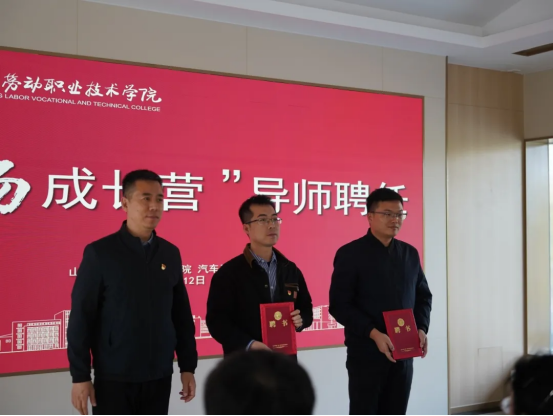 随后,“胡杨成长营”成立授牌与导师聘书颁发仪式顺利举行。王洪彩部长为“胡杨成长营”授牌,缪丽伟代表汽车工程系接牌,标志着成长营正式投入运行;孙东处长为首批导师王德猛、田少华颁发聘书,为成长营规范化建设与高质量发展提供师资保障。