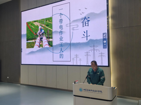 全国劳动模范、全国五一劳动奖章获得者、大国工匠、国网山东省电力公司超高压公司带电作业班副班长王进做主题报告。王进以《一个带电作业工人的奋斗》为题,用平实质朴却暗藏巧思、幽默风趣又直抵人心的语言,娓娓道来他在国家电网24载春秋的成长轨迹与心灵沉淀。从初入行业时面对高压电杆的忐忑,到成长为技术能手的从容;从在风雨中抢修线路的艰辛,到创新工法提升作业效率的突破,他用一个个鲜活的故事串联起奋斗的年轮。他的讲述中,既有对祖国电力事业蓬勃发展的自豪,也有对“择一事终一生,不为繁华易初心”的坚守——这份初心,是对技术的敬畏、对责任的担当,更是对“把论文写在电网线上”的执着。他坦言:“卓越技能不是与生俱来的标签,而是工人安身立命的根,是守护万家灯火的底气。”从带电作业中的“毫米级”精准操作,到研发新型绝缘工具破解行业难题;从寒冬酷暑中的坚守,到主动请缨参与重大保电任务,他用每一次操作、每一次创新、每一次奉献,生动诠释着“爱岗敬业、争创一流”的进取精神,“艰苦奋斗、勇于创新”的开拓品格,“淡泊名利、甘于奉献”的崇高境界。他的奋斗历程,既是一部个人成长的“技能修炼手册”,更是一曲新时代劳模精神的“生动注脚”——用双手创造价值,用坚守诠释忠诚,用奋斗书写“技能报国”的壮美篇章。
