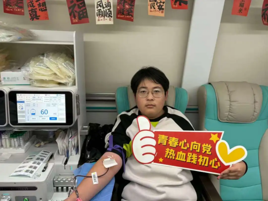 作为学生团员干部,此次献血于我而言,不仅是一次志愿服务,更是一堂生动的生命教育课。当针头扎进血管,没有紧张,只有平静。看着鲜红的血液缓缓流出,我深知它即将为他人带去生的希望。三次献血,让我愈发明白奉献的意义。每一次付出,都是对生命的守护,未来我还会继续,让这份爱与勇气,在血液中不断流淌、延续。
