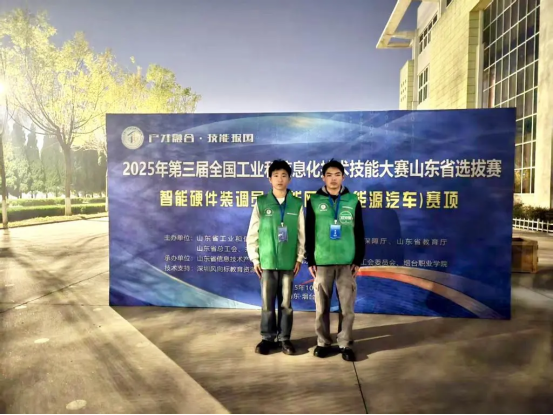 10月31日至11月2日,第三届全国工业和信息化技术技能大赛山东省选拔赛智能硬件装调员(智能网联新能源汽车)赛项在烟台举行,全省35支职工队伍和29支学生队伍参赛,学院汽车工程系学生李翔宇和李瑞轩获第3名、郝文轩和王记墨获第8名,教师曹爱红和王金祥获第5名的好成绩,实现该赛项成绩突破。