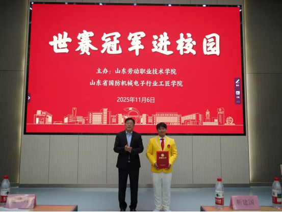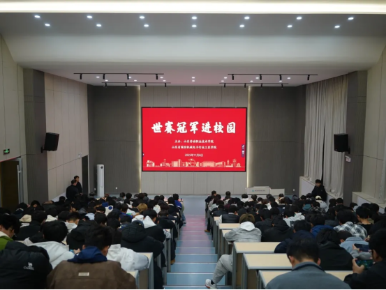 杨绍辉以“一个技校生的冠军逆袭之路”为题,用真挚的话语、鲜活的事例,讲述了自己从校园里钻研技能、到备赛中攻坚克难、再到世界赛场登顶夺魁的拼搏历程,让我们真切感受到世赛舞台的魅力、技能钻研的价值与奋斗逐梦的力量,为全体师生上了一堂生动深刻的“技能思政课”。