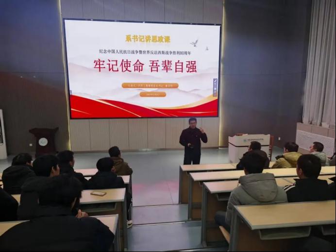 为深入贯彻党中央关于新时代历史教育的重要要求,加强爱国主义教育与民族精神培育,11月3日,我系在3号教学楼3108会议室举办“纪念中国人民抗日战争暨世界反法西斯战争胜利80周年”主题党课。汽车工程系党总支书记逄吉玲担任主讲人,全体师生代表、入党积极分子齐聚一堂,共同回望壮阔抗战史,感悟伟大抗战精神,凝聚奋进力量。