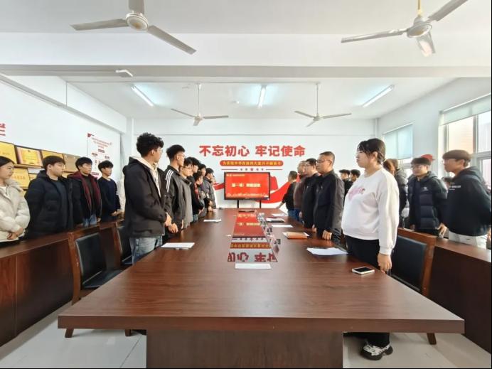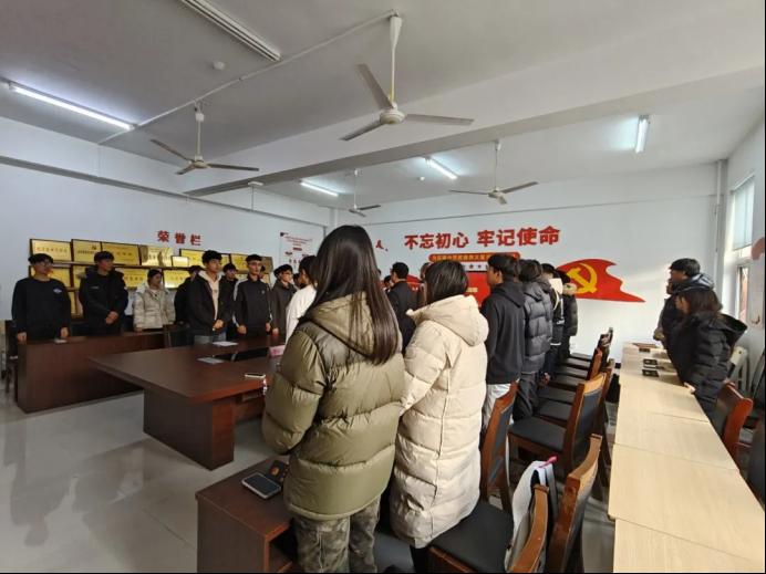 在团旗的见证下,汽车工程系团总支成员李贞硕带领新团员宣誓。新团员们高举右拳,庄严宣誓,铮铮誓言铿锵有力,回荡在会场的每一个角落,表达了对共青团组织的无限忠诚与为国家奉献青春的坚定决心。希望新团员们铭记这庄严的一刻,用实际行动践行自己的誓言,在学习和生活中发挥模范带头作用,做一名合格的共青团员。
