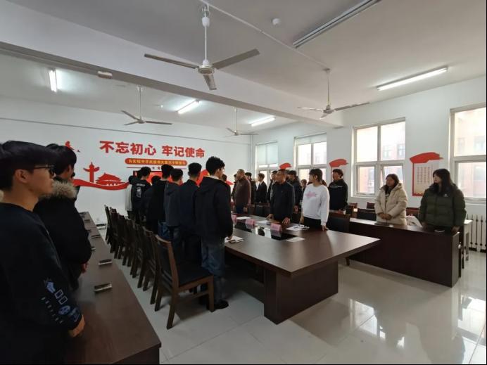 伴随着雄壮激昂的《义勇军进行曲》,全体人员肃立注目、齐声高唱国歌,嘹亮歌声传递着赤诚爱国情怀,入团仪式正式拉开帷幕。